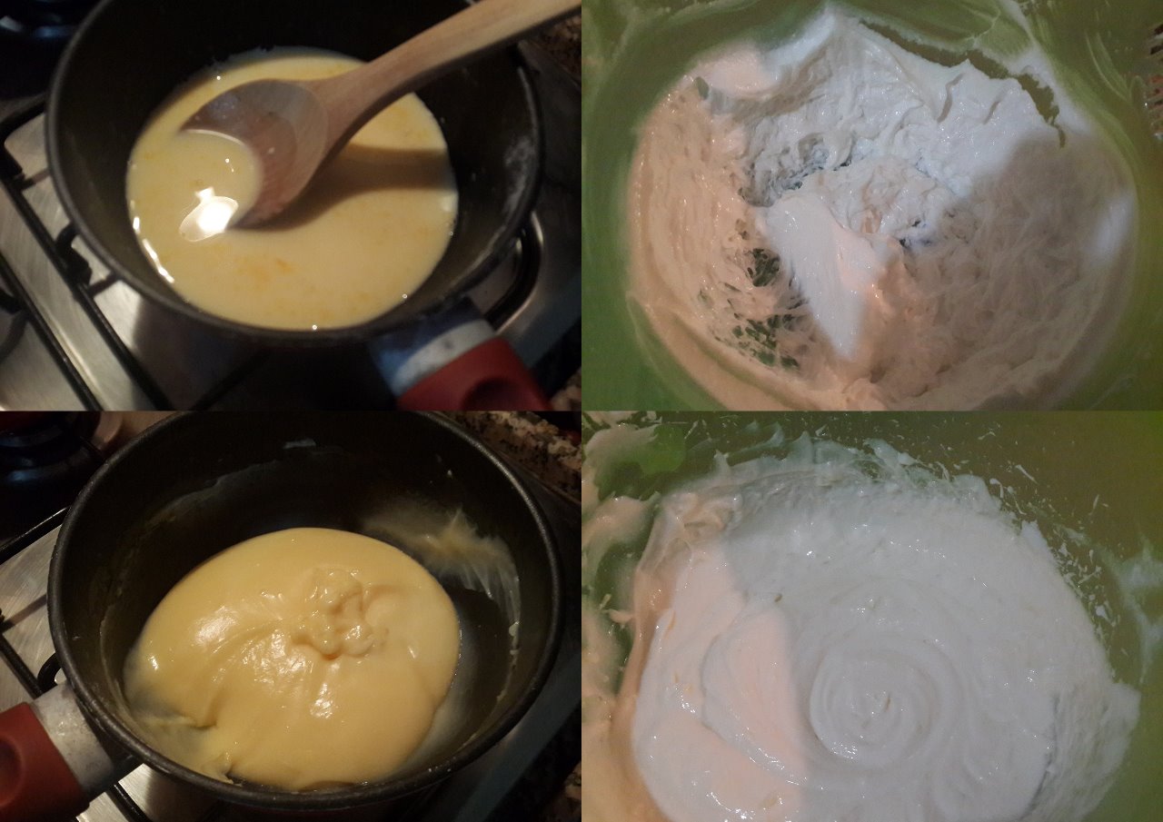 Dolgu; Sos tenceresine veya evinizdeki küçük bir tencereye sütü alın. Unu, nişastayı ve şekeri eleyerek ilave edin. Eleme işlemini mutlaka gerçekleştirin, aksi taktirde malzemeler topaklanabilir. Bir tahta kaşık yardımıyla malzemeleri karıştırın. Yumurtayı düz bir zeminde kırın ve sarısını sos tencerenize alın. Kremanın cıvık bir yapıda olmaması için yumurta akını katmamaya mutlaka özen gösterin. Tencerenizi ocağa alın, kısık ateşte, bir tahta kaşık yardımıyla karışımınızı sürekli karıştırın. Karışımınız katılaşmaya başladığı an ocağın altını kısın ve dibinin tutmamasına özen göstererek karıştırmaya devam edin. Tencerenizi ocaktan alın ve şekerli vanilini ilave ederek karıştırmaya devam edin. Tereyağı da ilave edin; eriyene kadar karıştırın. Tereyağı kremanıza hem lezzet hem de parlaklık katacaktır. Kremanın üzerini streç filmle kapatın ve dolaba kaldırın, 30 dk dinlendirin.