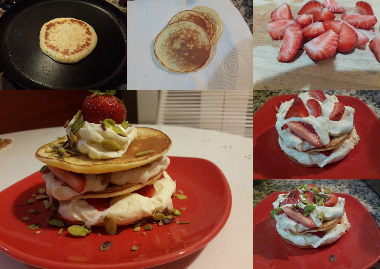Üç pankekin aralarına kremayı sürüp çilek dilimlerini yerleştirerek üst üste dizin. En üstüne de krema, çilek antep fısıtığı koyarak süsleyin. Antep fıstığını arzu ederseniz aralara da koyabilirsiniz. Bn öyle yaptım :)